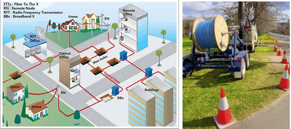 - Design Assistance for FTTH network (Air blown/Conventional)
